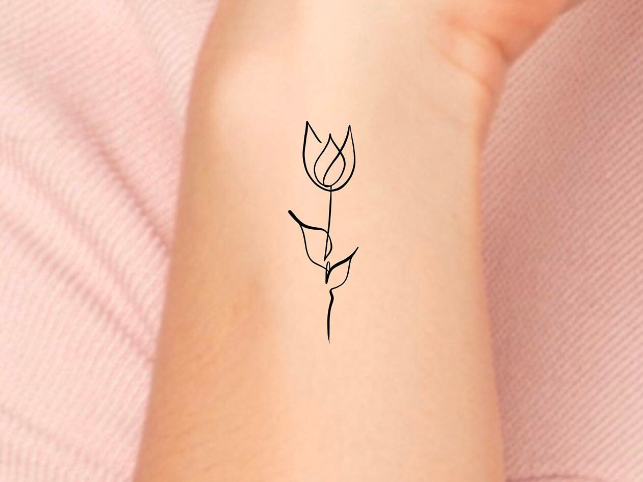 Tulips One Lined Set Of 2 Temporary Tattoo Etsy Tulip Tattoo Elegant Tattoos Tattoos For Women